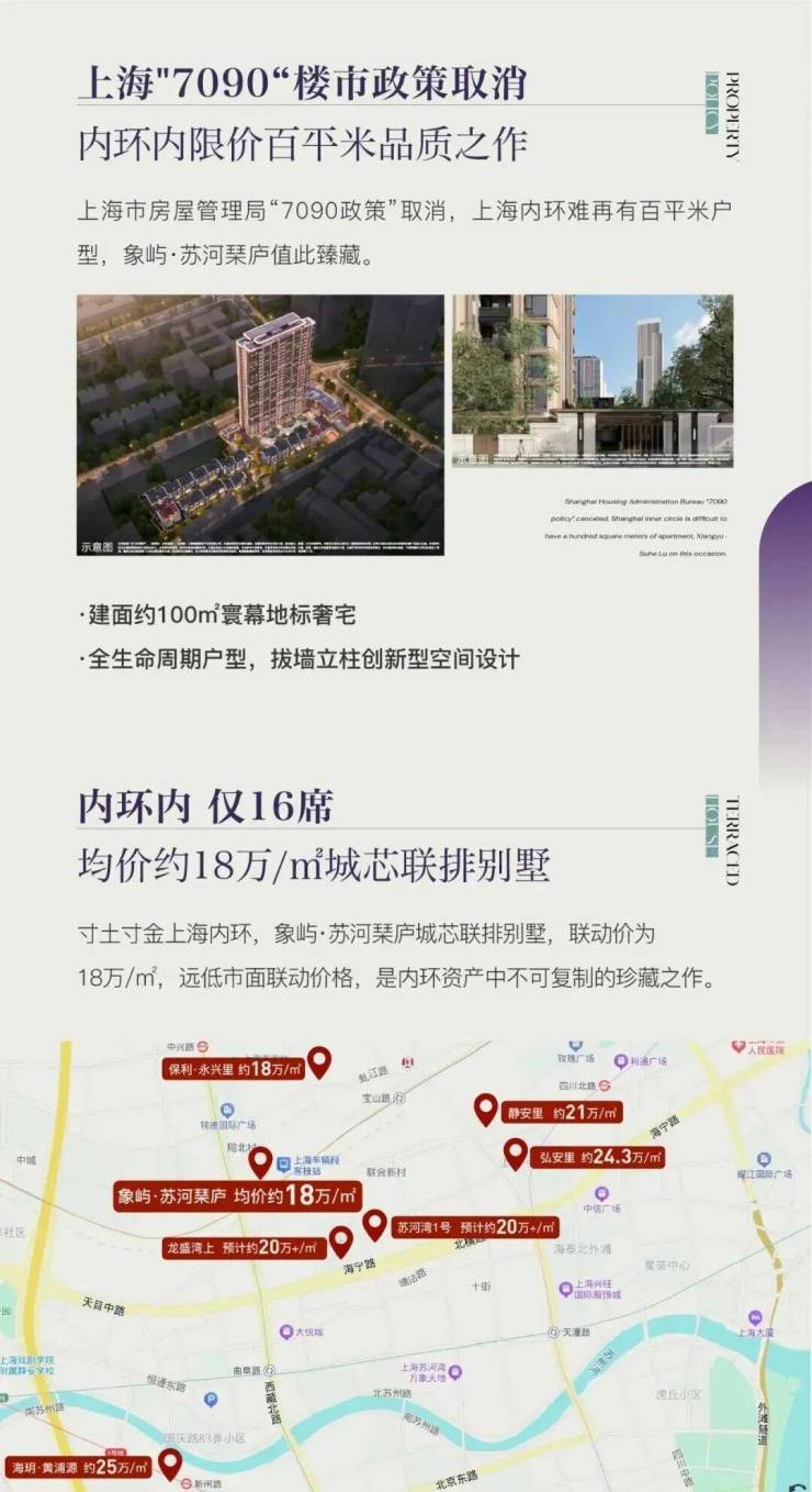 最新消息!静安内环内│苏州河畔【象屿苏河琹庐】建面191-223㎡合院类独栋&联排别墅,但实用面积却达到350-450㎡,一户一定制,地上2/3层+赠送地下室+私家花园!均价18万/㎡,总价3300-4500万!样板间线上预约中!