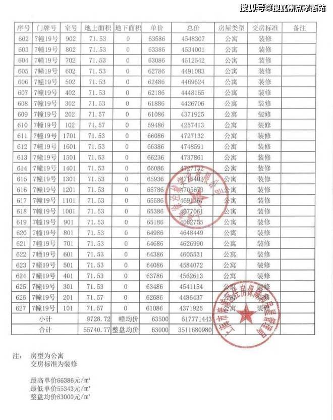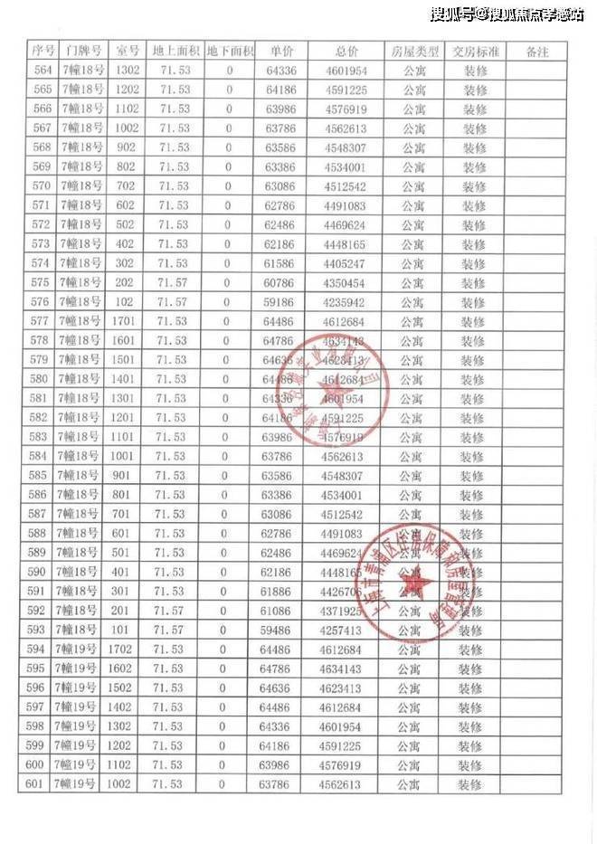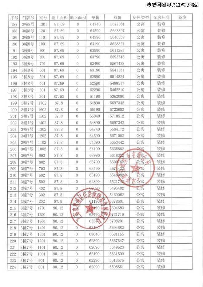 以下为项目完整一房一价表