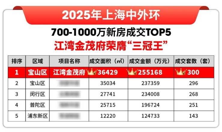 连续登顶2025年度、2026年一季度中外环700-1000万级市场榜单,同时稳居板块成交榜首,实力有目共睹。
