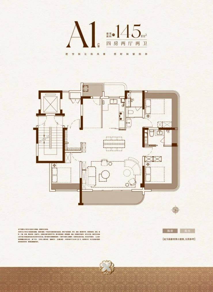 建面约1 45㎡四房两厅两卫: 终极改善的王炸作品