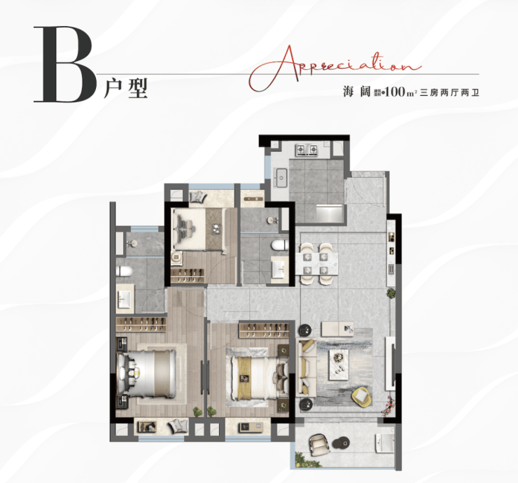 建面约 100㎡王牌瞰海户型(人气爆款)