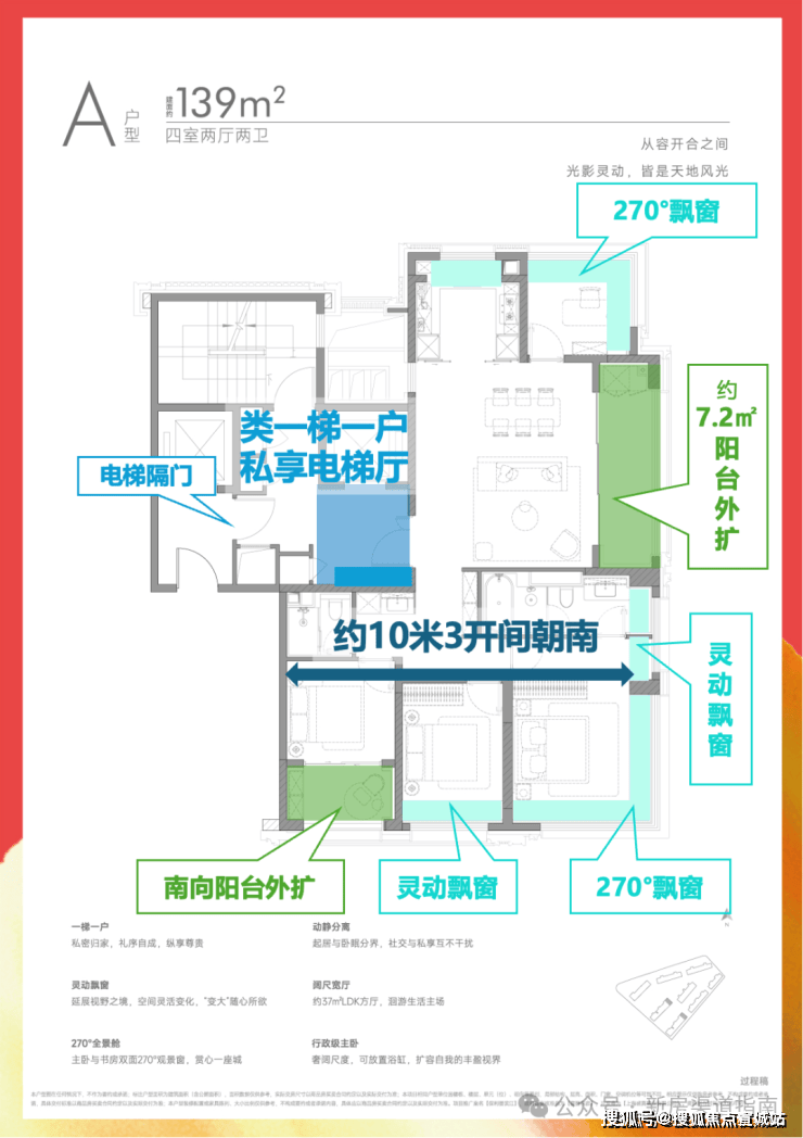 为了突出无遮挡的景观,更打造双南向阳台设计,使采光和视野更为优越。