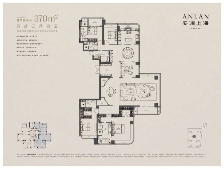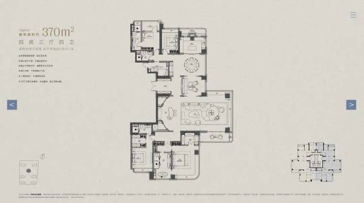 本项目专注改善型大户型,营造纯粹圈层,主力户型建筑面积约200-400㎡。