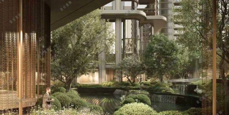 三层归家动线:从地面景观层到架空层,再到入户层,穿越绿植、光影与水景,步步进入私域。