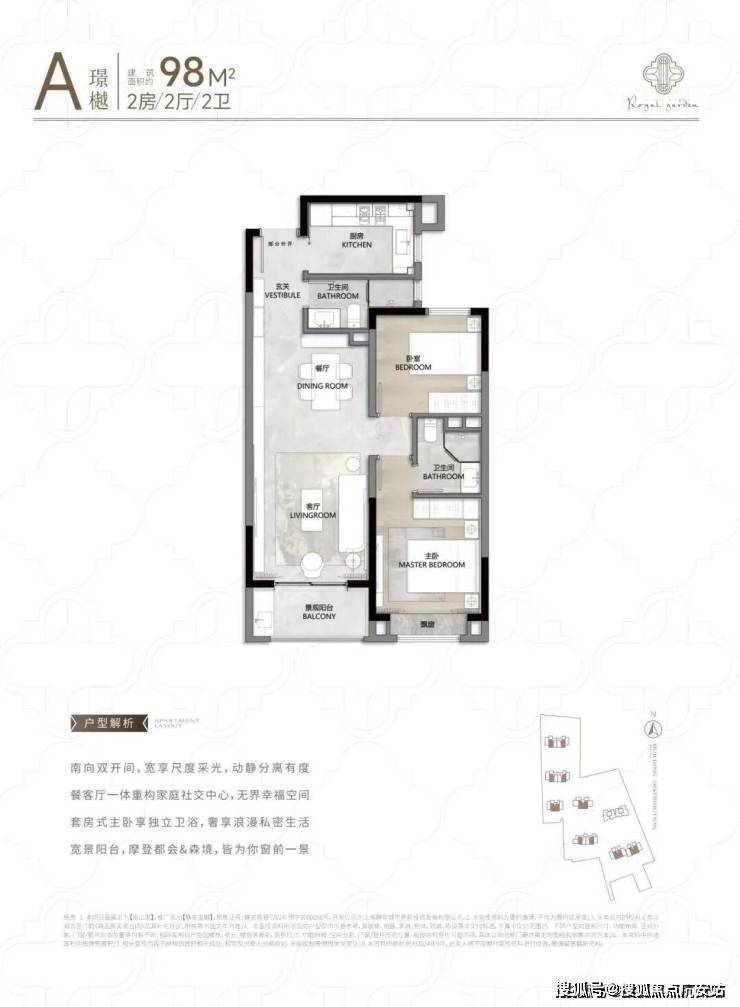 在售面积:94㎡/98㎡/100㎡2房2厅2卫