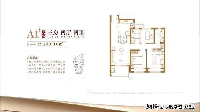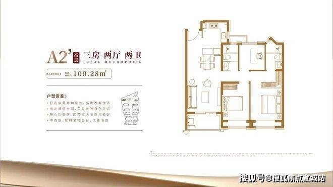 具体细节方面,项目目前只有一个建面约100㎡三房的样板间,带软装后面宽约3.3米,吊顶后层高约2.73米。