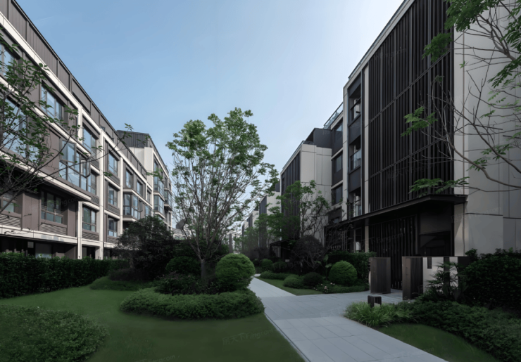 以浅灰、米白为主基调,局部搭配深灰色线条,提升建筑层次感