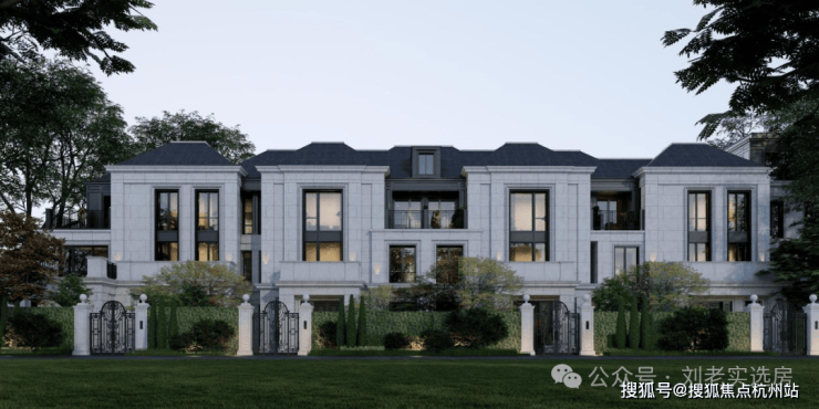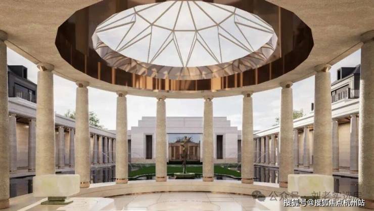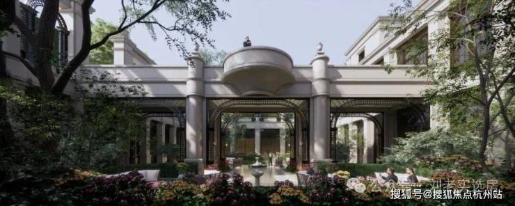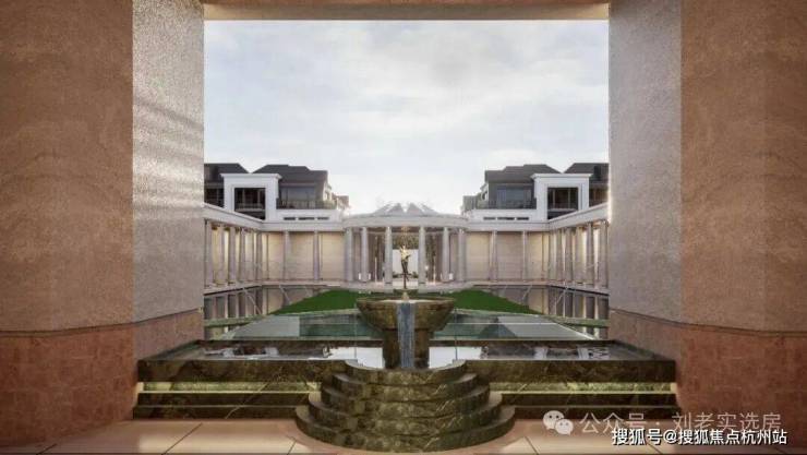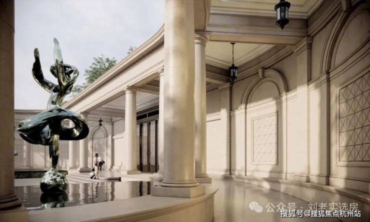 包括立面: 门头: 廊柱: 甚至是地面,用的都是石材: 这样的设计即使是在顶豪圈也不多见,上一次看到还是黄浦的 融创外滩壹号院 。