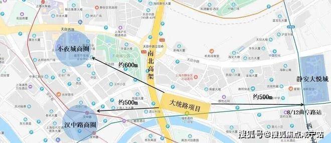 约500米左右静安大悦城、1站人民广场、3站黄陂南路(步行约60米新天地)、3站静安寺,轨交10分钟内便有上海最大、最繁华的商圈!