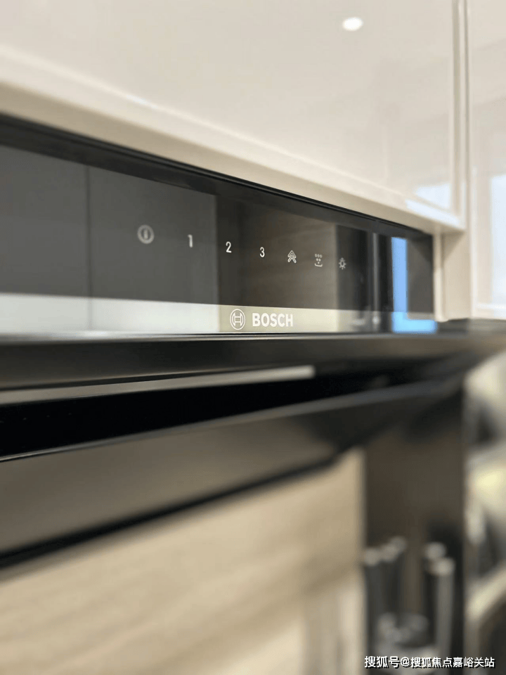 厨房,采用博世(或同等品牌)的吸油烟机、灶具、洗碗机、蒸烤一体机四件套、怡口(或同等品牌)的末端净水器、摩恩(或同等品牌)的垃圾处理器都统统配备。