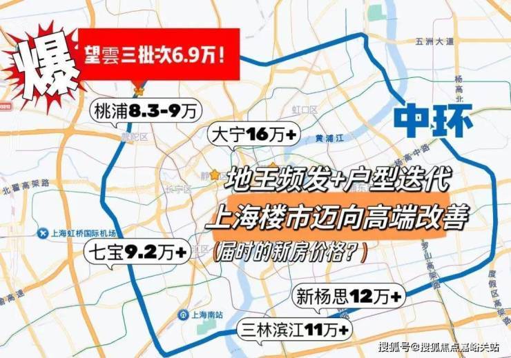 再看当下中环新房的价格,早就不便宜了,桃浦约8.5万/㎡,最近的新房预计9万+/㎡,五角场、长征10万+/㎡,徐汇长桥、三林滨江11万+/㎡....