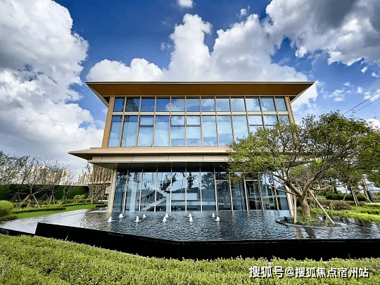 建筑美学:采用典雅的米白色真石漆外立面,线条简洁流畅,融合现代简约与东方雅致,与湖光绿意相映成趣,成为区域标志性建筑。